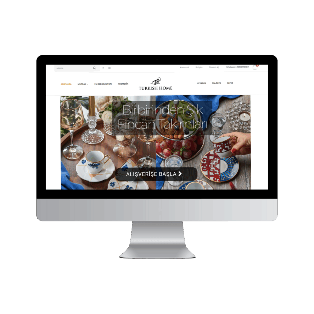 Turkish Home, çok kategorili ürünlerin sade ve düzenli bir yapıda sunulduğu bir e-ticaret sitesi olarak hazırlandı. Ürünlerin fiyat, açıklama ve görsellerle desteklendiği site; kullanıcı dostu tasarımıyla kolay alışveriş deneyimi sunuyor. Kategorilere göre ayrılmış menü yapısı ve hızlı iletişim imkânı sağlayan WhatsApp entegrasyonuyla, pratik ve güvenilir bir dijital mağaza ortamı oluşturuldu.